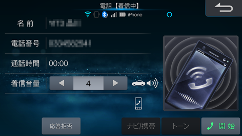 電話がかかってくると着信音が鳴り、着信画面が表示されます。