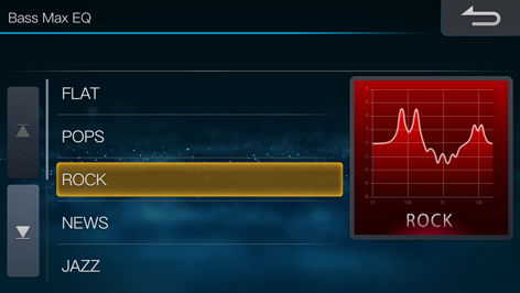 設定値:FLAT、POPS、ROCK、NEWS、JAZZ、ELECTRICAL DANCE、HIP HOP、EASY LISTENING、COUNTRY、CLASSICAL
