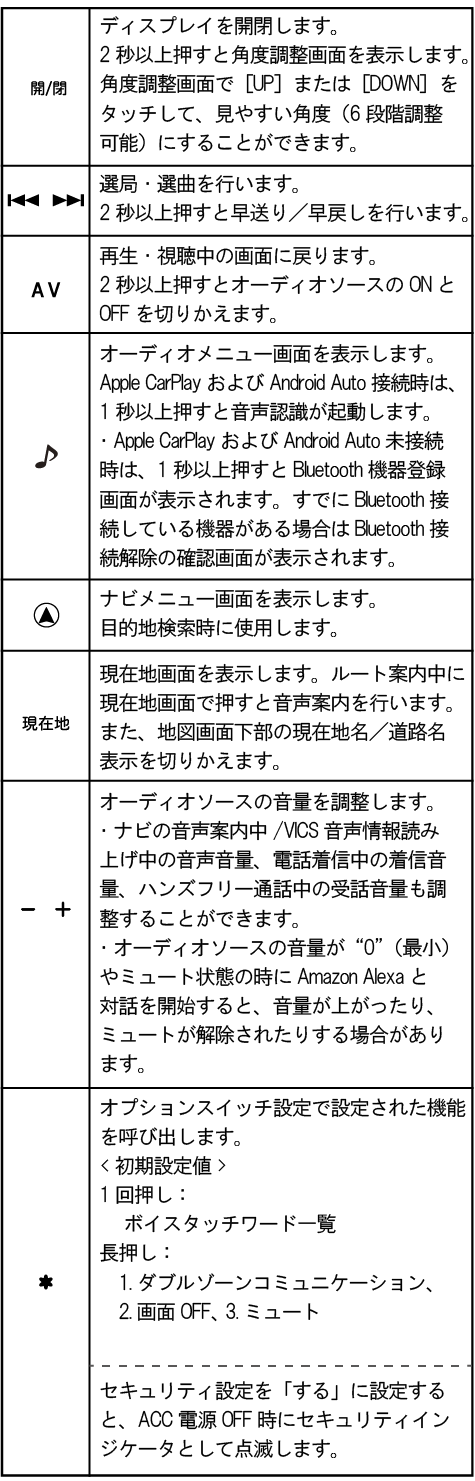 取り付け車種によりスイッチ形状・配列・名称が異なります。下記イラストは実際の製品と異なる場合があります。