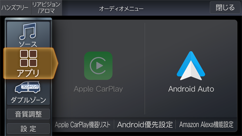 接続しているAndroidスマートフォンのアプリを使用できます。本機画面に表示されるアプリは接続するAndroidスマートフォンによって異なります。
