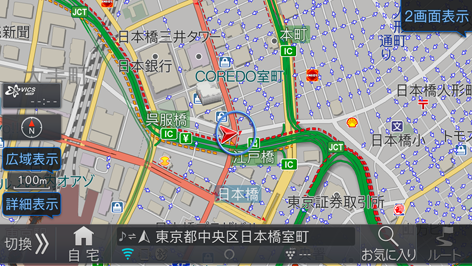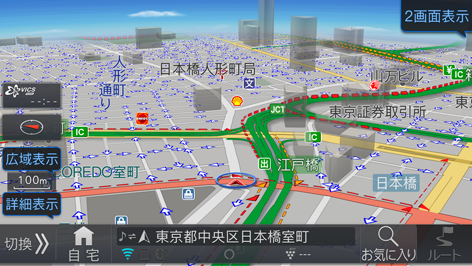ヘディングアップの状態で立体的な地図(3Dマップ)を表示します。
