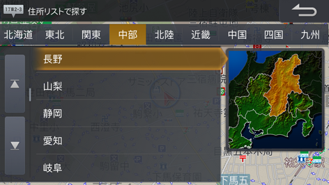 都道府県名から順に住所を絞り込んで地点を探すことができます。