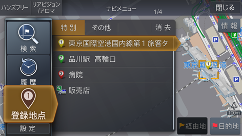 よく行く場所を特別地点に登録しておくと、簡単な操作で目的地に設定できます。