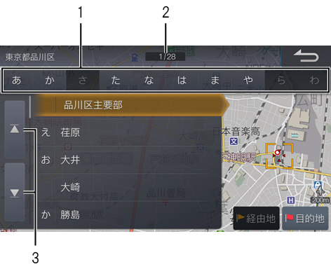 リスト画面の操作は地点検索操作や設定操作などで行います。