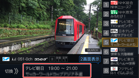 選択している番組の番組名やあらすじなどの番組情報を表示します。音声多重放送かどうかなども確認できます。