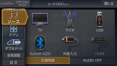 交通情報を終了するときはオーディオメニュー画面で他のソースを選択してください。