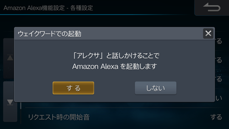 「アレクサ」と発話してAmazon Alexaを起動するかどうかを設定します(初期設定値は「する」)。