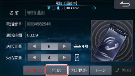 三者通話サービスに対応している携帯電話が接続されているときに、三者通話を行うことができます。通話中に電話をかけることができます。