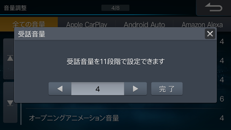 またはにタッチして音量を調整し、[完了]にタッチします。