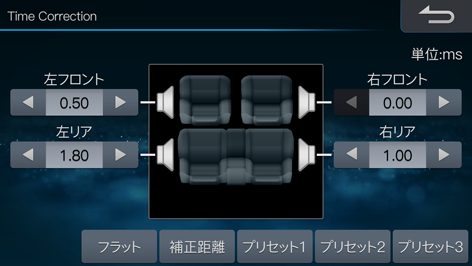 音が各スピーカーから耳に届くまでの時間を補正し、距離の違いによって生じる到達時間差を調整することができます。