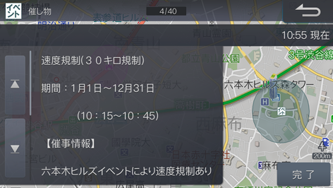 リストから情報を選択して[完了]または画面右側の地図にタッチすると、対象となっている地点を地図上で確認できます。