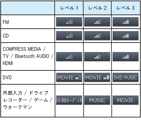 COMPRESS MEDIA・TV・Bluetooth AUDIOは、いずれかの設定を変えると同じMXレベルに設定変更されます。