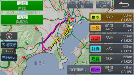 [案内開始]にタッチします。または走行を開始します。