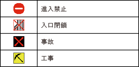 規制、事故、災害および異常気象などが発生している対象エリアまたは情報に応じたマークを地図上に表示します。