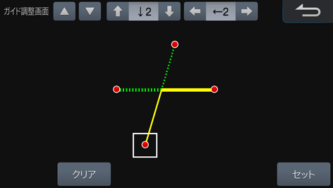[↑][↓][←][→]にタッチしてガイドの位置を調整します。調整が済んだら[セット]にタッチします。