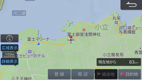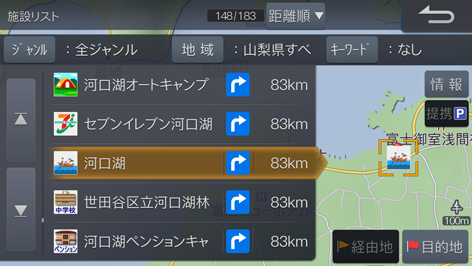 目的地はさまざまな方法で探すことができますが、施設名称を使った検索を例に説明します。