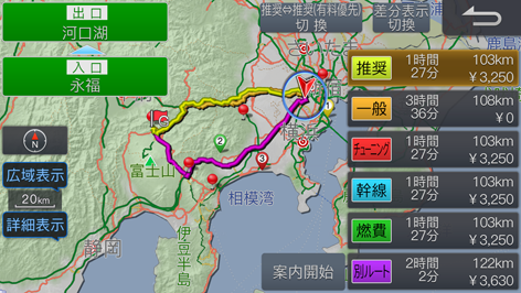 ナビ案内を利用するには、「目的地地点を探す」→「今いる場所からのルートを引く」→「ルートを確認する」の手順を踏みます。