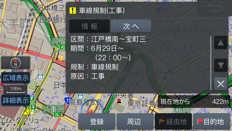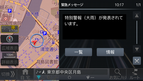 VICS割り込み情報に音声情報が含まれる場合は、表示と共に自動的に読み上げを行います。