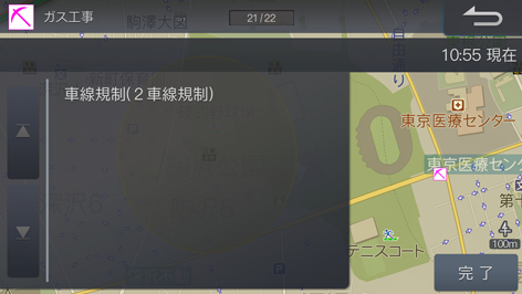 リストから情報を選択して[完了]または画面右側の地図にタッチすると、対象となっている地点を地図上で確認できます。