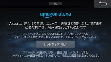 画面の指示に従ってiPhoneまたはAndroidスマートフォンを操作し、Amazon Alexaのセットアップをします。本機でAmazon Alexaが使えるようになり、Alexa呼び出し機能が
