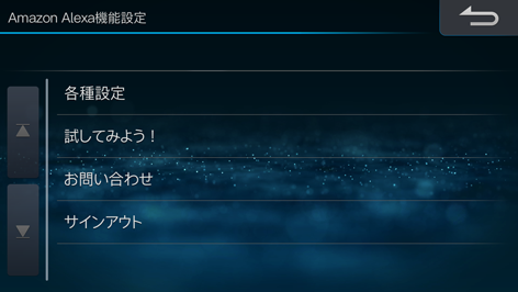 スイッチを押し、オーディオメニューの[アプリ]タブにタッチしたあと、[Amazon Alexa機能設定]にタッチします。