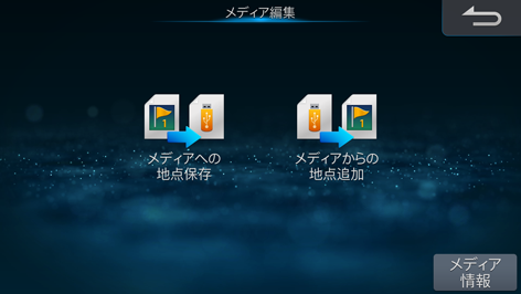 スイッチを押し、ナビメニュー画面で[設定]にタッチしたあと[メディア編集]にタッチします。
