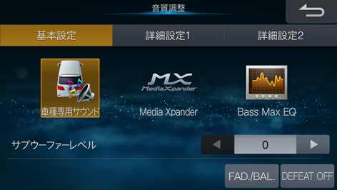 [サブウーファーレベル]のまたはにタッチして出力レベルを調整します。