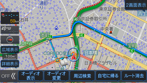 よく使う機能を発話するだけで、スイッチ操作や画面タッチなしで操作できるボイスタッチ機能を使用することができます。現在地画面またはオーディオ再生画面でボイスタッチワード一覧のワードを発話することで、施設検索をしたりカメラの映像を表示したりすることができます。