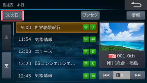 次の日の番組表を表示します。