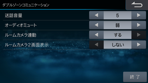 会話が終了したらダブルゾーンコミュニケーション画面または後部座席映像の[終了]にタッチします。または