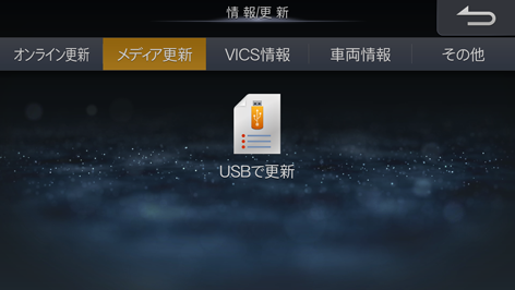 [メディア更新]タブにタッチし、[USBで更新]にタッチします。更新可能なデータリストが表示されます。