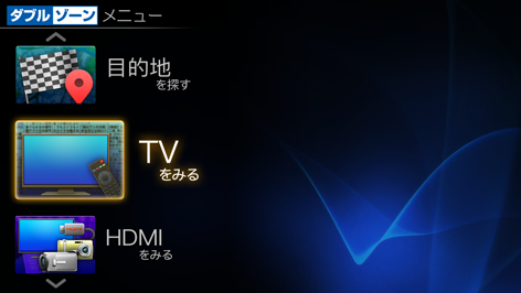 リモコンの[リア専用メニュー]スイッチを押してリアビジョン用ダブルゾーンメニューを表示します。ジョイスティックを上下に押して項目を選択し、[決定]スイッチを押します。